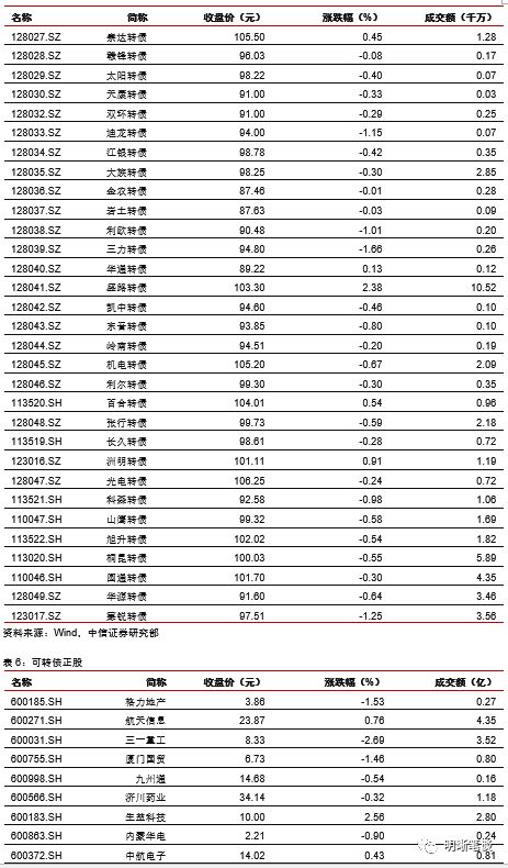 上周转债市场受股市调整与大盘转债潜在供给的冲击跌幅较大,个券层面也明显缺乏亮点。四季度以来我们一直重申需适应市场双向波动特征的观点,进入十二月以来该特征的表现尤为明显,权益市场整体并未脱离震荡磨底的方向,预计这一趋势还将持续一定时间。上周受新转债预案过会消息冲击,存量高溢价大盘转债大幅调整,拖累指数。对于新银行转债来说,受制于最近一期经审计的高PB,预计将会以提高综合票息的形式发行,换言之通过票息来补偿高企的溢价率水平。我们认为经过一周的调整后存量标的与潜在新银行转债的相对性价比已经相差无几,此时作为流动性替代品的配置价值更为突出。对市场策略而言,受债底支撑整体价格继续回落的空间相对有限,但更核心问题在于结构失衡,偏债标的占比数量过多以及整体转股溢价率偏高都是压制短期空间的主要因素,因此从策略而言并未到整体布局的时间,我们中性仓位的观点值得进一步重视,在结构上以低价、相对低估值标的为中长期配置的选择更可取、也更可行。而新券是改善市场结构的关键一环,我们期待也欢迎更多新券的发行上市。中短期角度而言,我们再次重申对于高估值标的的谨慎态度,特别是价格相对不低估值也不低的标的,高估值最终是收益幅度的负反馈这一性质不会改变。若溢价率突破一定阈值,此时应该迅速且果断降低仓位。建议关注东财转债、三一转债、桐昆转债、高能转债、旭升转债、国祯转债、新泉转债、景旺转债、洲明转债、百合转债以及银行转债。